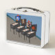 This is a standard metal lunchbox that appears to work just fine. We designed this box ourselves with an uploaded photo and custom text on the front and back. It looks absolutely beautiful except the front of the lunchbox is not centered like it shows in the photo. The print borders don't align with the inset flat part of the box where the preview photo online showed it perfectly centered in there. The back looks nice and centered though.