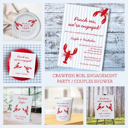 Add a festive and personal touch to your crawfish boil engagement party with these charming custom napkins! Featuring the fun phrase “Pinch Us, We’re Engaged”, these napkins are perfect for a laid-back Southern celebration full of flavour, laughter, and love.
