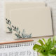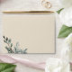 This Pine Blue Winter wedding coordinate invitation envelope combines a classy, formal beige background with elegant, evergreen pine tree boughs for a classic, yet rustic look. The botanical greenery foliage with calligraphy type creates a nature focused, neutral vibe for a Christmas or forest destination marriage celebration. The envelope has return address printed on the back to allow for a clean look on the front.