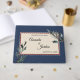 This Pine Blue Winter wedding guest book combines a classy, formal dusty blue framed border with elegant, evergreen pine tree boughs for a classic, yet rustic look. The botanical greenery foliage with calligraphy type over a beige background creates a nature focused vibe for a Christmas or forest destination marriage celebration.