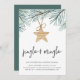 Invite friends and loved ones to share some merriment this holiday season with our modern and festive holiday party invitations. Chic, simple design features watercolor pine boughs in spruce green, adorned with a single wooden star ornament. "Jingle and Mingle" appears beneath in handwritten lettering. Personalise with your holiday party details using the four lines of custom text provided.