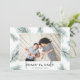 Share holiday greetings with these modern photo Christmas cards featuring your favourite horizontal or landscape orientated photo flanked by watercolor pine boughs in chic spruce green. "Peace on Earth" appears along the bottom in handwritten lettering. Personalise with your names and the year beneath.