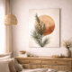 A minimal botanical design featuring a pine branch silhouette set against a soft textured sun in neutral tones. The organic composition creates a calm and refined aesthetic, perfect for modern and nature-inspired interiors.