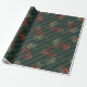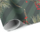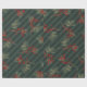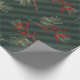 Pine Branch Red Ilex Berries Forest Green Stripe Wrapping Paper