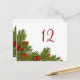 You can change the table number on these pine branches, pine cones, and berries table number cards. This is nice for a Christmas party or event. You can use them for a Christmas wedding as well. Note, you must change the number on the card using personalise, add quantity one to your cart, and then repeat the process until you have all the cards that you need. This traditional design is red and green in colour.