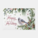 Lovely Christmas greenery including pine branches and pine cones and cute titmouse. With the words Happy Holidays - there is also a version with Merry Christmas.