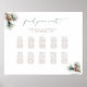 A wedding table poster for your winter wedding with watercolor pine branches and pine cones. The headline "find your seat" is in modern dark green calligraphy font. Personalise by adding your names and wedding date. This templates allows for the names of guests seated at 10 tables. Also avilable as a digital download to print yourself.