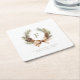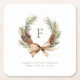 Pine Cone & Bow Wreath Monogram Family Holiday Square Paper Coaster