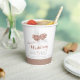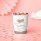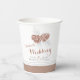 Personalise these wedding party paper cups with your own couple's full names. Brown, grey, and white cups are ideal for winter wedding events. Other matching items are available. © Original pine cone art hand drawing and design by Sarah Trett for www.mylittleedenweddings.com