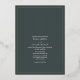 Illustration of foil pine cone with foil line border and off white text over dark emerald background.
