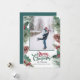 Say Merry Christmas to all your friends and family with this unique holiday card. This card features holly branches and pine cones along the sides. You are able to customise it with a photo of your family and with names.