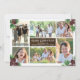White frames with green pine needles and pine cones watercolor graphic, frames 6 of your images, stylish and classy holiday Christmas cards. Upload six of your favourite pictures or digital snapshots for an easy photo template card. Quality, professional looking design with thin white frame and elegant writing along with your custom details. This photomontage of the family year in review is elegant and classy.