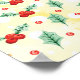 A poster with a cute pattern featuring pine cones and holly on a yellow watercolor background with little white circles scattered around.