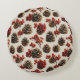 Pine Cones and Red Berries Winter Pattern Round Cushion