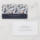 Business card with a beautiful pattern. Pine cones, feathers, pine needles and berry sprigs. Rustic watercolor design.