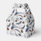 A favour box with a beautiful pattern. Pine cones, feathers, pine needles and berry sprigs. Rustic watercolor design.
