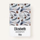 Personalised name badge with a beautiful pattern. Pine cones, feathers, pine needles and berry sprigs. Rustic watercolor design.