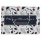 Large gift bag with a beautiful pattern. Pine cones, feathers, pine needles and berry sprigs. Rustic watercolor design. Merry Christmas and a personalised name written in a dark blue frame in the centre.