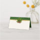 Pretty wedding folded place card done in ivory, with graphics of a gold on green swirl pattern background, along the front top and covering the inside and back. A festive little sprig of pine with pine cones, decorate the top front, of the card. Personalise by hand for each guest at your reception. Matching wedding products are available.