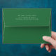 Pine Forest Green coloured envelopes that match the Pine Woods Watercolor Wedding Collection. Please check the La Bella Rue shop for many other colours. Add your return address to the back flap. Address prints in white. If you need a certain colour or have a questions please email me paula@labellarue.com BEFORE YOU CUSTOMIZE or place an order.