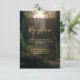 Elegant green and gold pine tree enchanted forest wedding reception details enclosure card. Personalise this with your own details to make it your own to send out to friends and family.