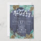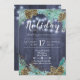 Seasonal elegant winter navy blue, green, brown and white holiday business corporate open house invitation template on dark midnight blue barn wood like background featuring a watercolor seasonal pine branches wreath with brown pinecones and strings of twinkle lights. ++++++++++++++ Personalise with your details! You can choose to customise it further changing fonts and colours of lettering. +++++++++++++++ The invitation is suitable for winter holidays chic rustic country inspired corporate parties or company open house.