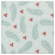 Pine Needles and Red Berries on Light Blue Winter Fabric