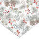 This design features a watercolor illustration of pine twigs, pine cones and red berries.