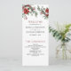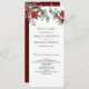 Elegant wedding program featuring beautiful red poinsettia flowers with pine cones and leaves.
