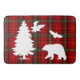 Pine tree Bear Eagle on Red Black Tartan Bath Mat