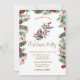 Pine Tree Branches Red Holly Berries Christmas Invitation