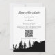 Pine Tree Mountain QR Code Wedding Save The Date Invitation. Personalise this black and white design with your personal details.