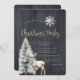 Pine Tree,Reindeer,Snowflake Black Christmas Invitation