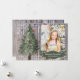 Pretty design features a pine tree with pine cones and a red cardinal. The pine tree is against a rustic wood background. Around the tree is text in various white font styles that say different words of the season such as joy, noel, tidings, faith, etc. To the right of the pine tree is a place to add your photo. Below the photo is a grey-green banner where you can customise with your own text in white font. The reverse side of the card has the rustic wood background. This is part of the Pine Tree With Cardinal Rustic Christmas collection.