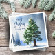 Pine Tree with Snow Watercolor Painting Christmas Napkin