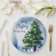 Pine Tree with Snow Watercolor Painting Christmas Paper Plate