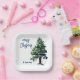 Pine Tree with Snow Watercolor Painting Christmas Paper Plates. This personalised plates have a watercolor painting of a pine tree with snow in a snowy landscape. Add your family name or erase it.