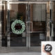 Pine tree wreath window cling with "Happy Holidays" script and custom text. For more advanced customisation of this design, please click the BLUE DESIGN TOOL BUTTON. Matching items are also available.