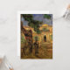 Pine Trees with Figure in the Garden of Saint-Paul Hospital by Vincent van Gogh is a vintage fine art post impressionism daily life portrait painting featuring a view of a man standing beneath pine trees in the gardens with a building with shutters and a balcony in the background. Another person is standing at the front door, the main entrance to the hospital.