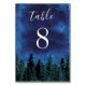 Pine Trees Watercolor Rustic Wedding Table Number Cards - feature a watercolor starry night sky with evergreen pines in various shades of green with an elegant text layout. See matching products in the collection found on this page.