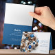 A beautiful wreath of blue and silver ornaments, pine cones, and Season's Greetings (or any wording) along with your company name on the front, your personalised thank you message is printed on the inside with your names. MORE styles in our collection.