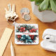 Personalised keychain with a pretty Christmas wreath. A festive image with a pine wreath decorated with red flowers, holly and a lovely blue bow. Delightful.
