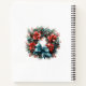Spiral notebook with a pretty Christmas wreath. A festive image with a pine wreath decorated with red flowers, holly and a lovely blue bow. Delightful.