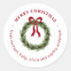 Pine Wreath with Red Bow Merry Christmas Classic Round Sticker