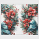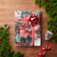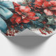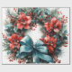 Pine Wreath with Red Flowers and Holly Wrapping Paper
