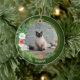Beautiful watercolor wreath of Christmas pines, roses, petunias and white berries. Upload your favourite photo of your fur baby and personalise with their name. Background is deep Hunter green and design is on both sides.
