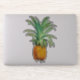 Beautiful orange-yellow ripe pineapple with lush green leaves. Vintage botanical drawing.