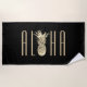 Pineapple Aloha Tropical Gold Typography Black Beach Towel