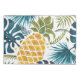 Tropical, lush green and blue palm tree leaves. With a large golden pineapple. White elegant background. Perfect for a modern and trendy home, bedroom.