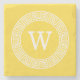 Pineapple Greek Key Rnd Frame Initial Monogram Stone Coaster